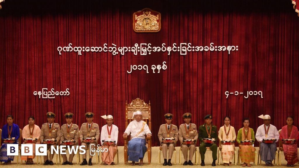 ဂုဏ်ထူးဆောင် ဆုတံဆိပ်ပေးတဲ့ အခမ်းအနားကို သမ္မတအိမ်တော် က သဘင်ဆောင်မှာကျင်းပခဲ့တာပါ။