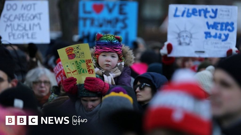 ပြည်ဝင်ခွင့် ကန့်သတ်မိန့်ကို အမေရိကန် မြို့ကြီးတွေမှာ ချီတက် ဆန္ဒပြ