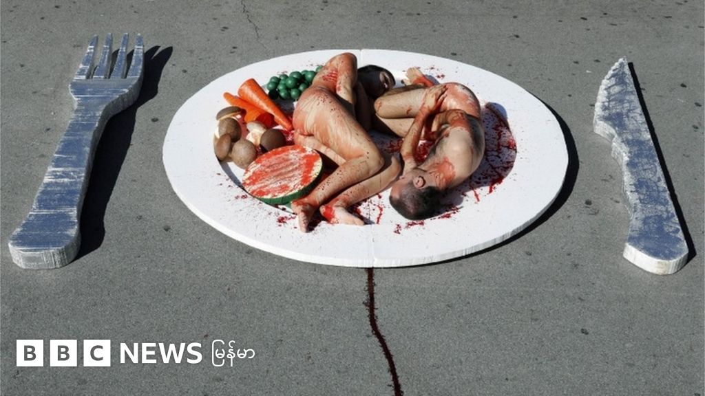 ဓာတ်ပုံ ပုံစာ, စပိန်နိုင်ငံ ဘာစီလိုးနားမြို့က နိုင်ငံတကာ အသား မစားသူများနေ့ အထိမ်းအမှတ်ပွဲမှာ သက်သတ်လွတ် သမားတွေ သရုပ်ပြ ပုံဖော်