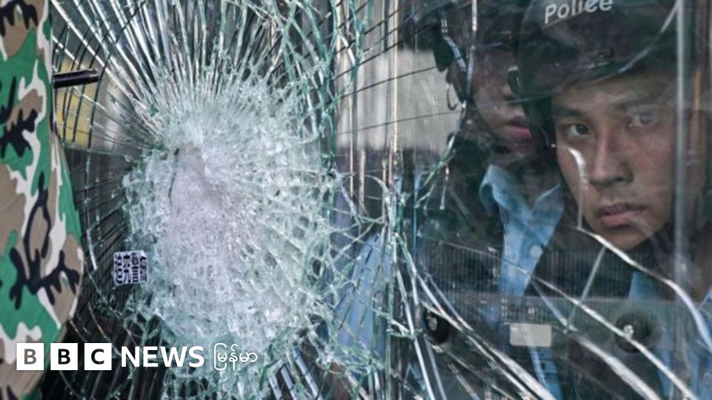 အဓိကရုဏ်းနှိမ်နင်းရေး ရဲတွေက ရုံးအဆောက်အအုံအတွင်းကနေ ပြန်လည် ခုခံကြပါတယ်။