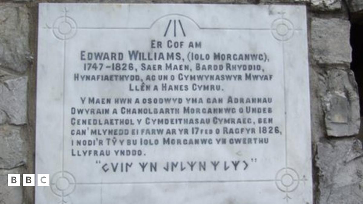 Ceir cofeb i gofio cyfraniad Iolo ym Mryn Y Briallu yn Llundain