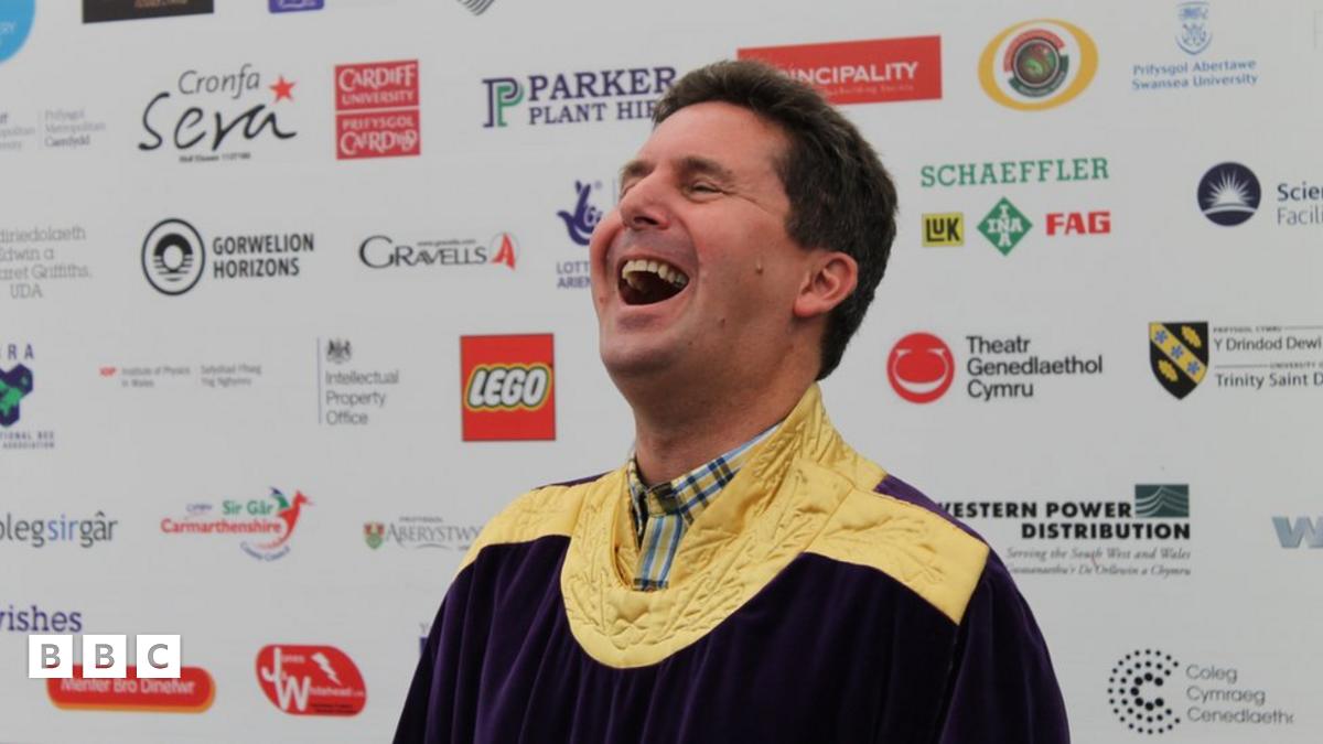 Chwarddiad iach y bardd buddugol / Winning bard Ceri Wyn Jones has plenty to smile about
