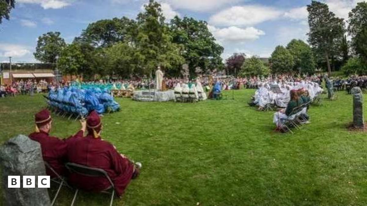 Yna, bydd y corau hynny'n ymuno i ganu gyda'i gilydd ar lwyfan y pafiliwn.