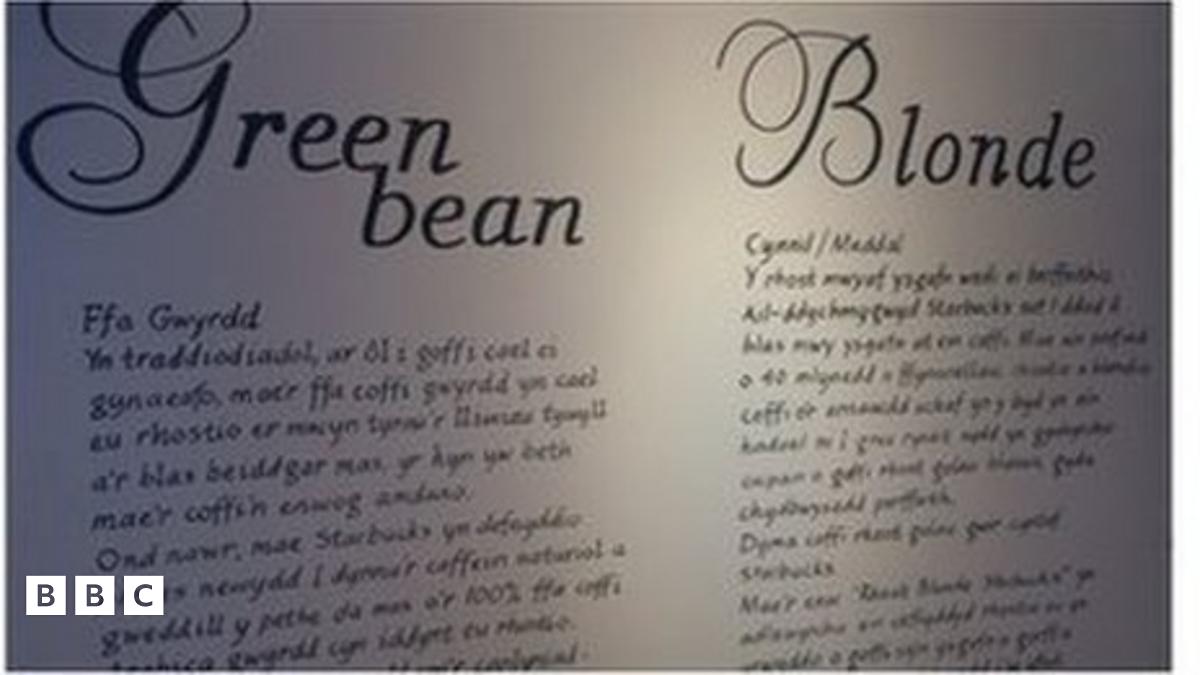 Gwallau iaith yng nghaffi Starbucks yn Aberystwyth