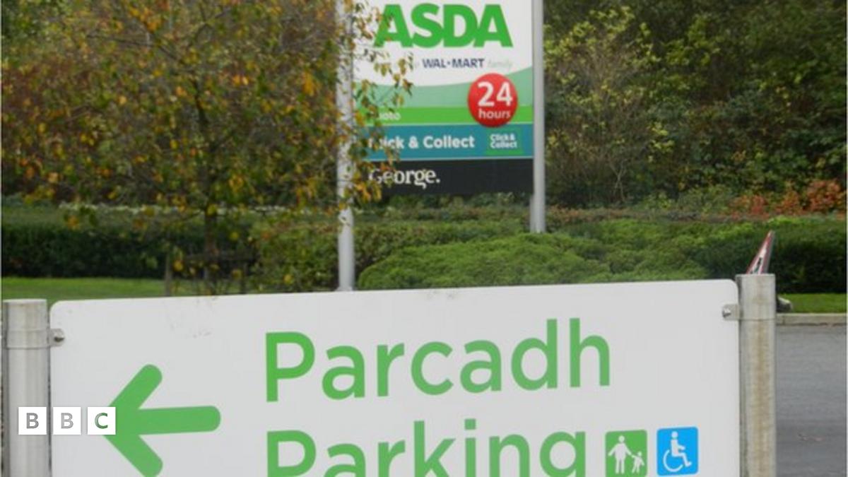 Cafodd yr arwydd, sy'n dweud 'Parcadh - Parking', ei osod y tu allan i siop Asda yn Nhreforys, Abertawe.