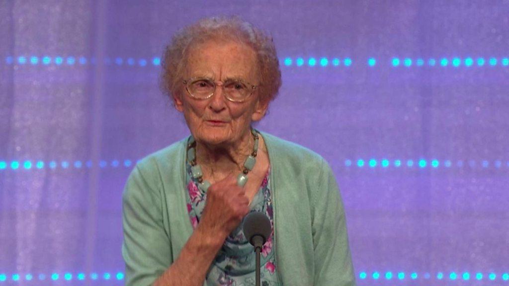 Helena Jones, 99 oed, yn cystadlu ar lwyfan yr Eisteddfod