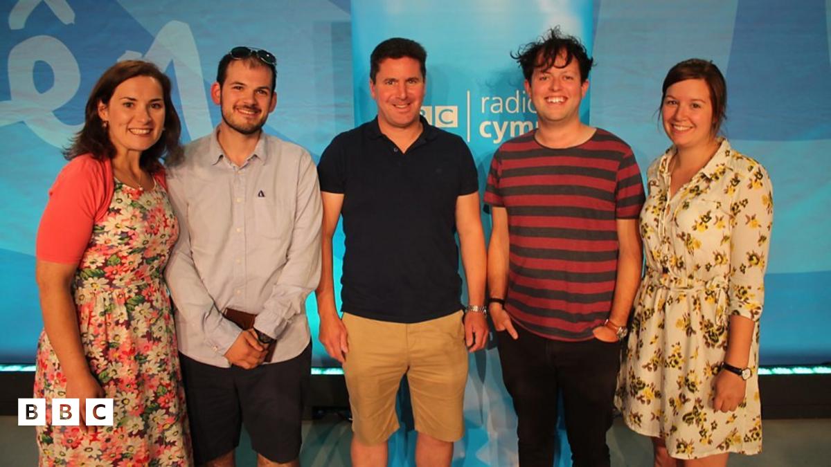 Y Meuryn a'r Ffoaduriaid: Y Prifardd Ceri Wyn Jones gyda phencampwyr presennol Talwrn y Beirdd