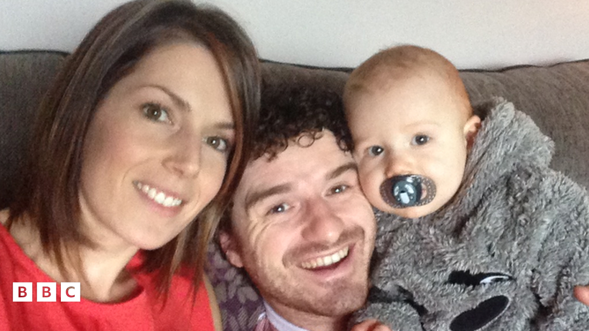 Gwennan ac Ywain a'u mab adre'n saff - ar un pwynt roedd Gwennan yn pryderu bod swyddogion tollau am gymryd eu mab