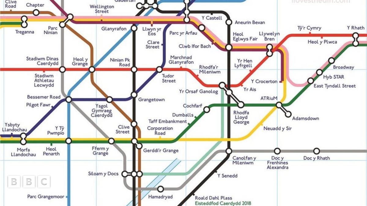Creu map trên tanddaearol o Gaerdydd yn y Gymraeg