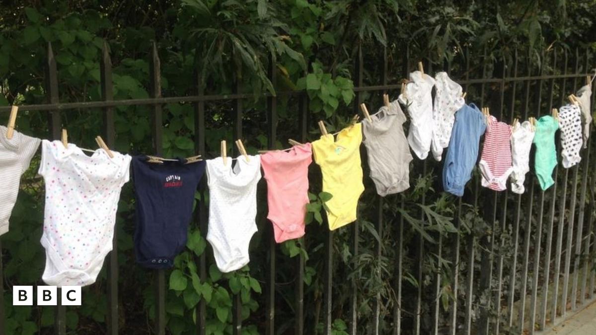 Mae Sands yn defnyddio lein olchi gyda 15 dilledyn babi fel symbol ar gyfer y plant sydd yn parhau i farw bob diwrnod ar draws y DU