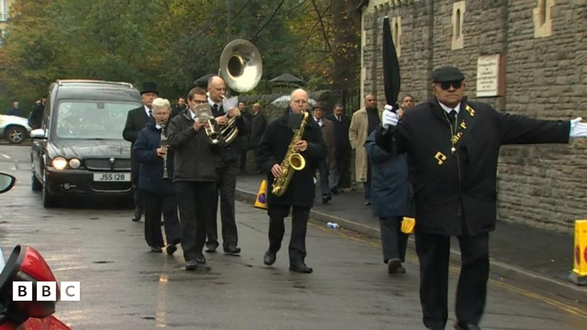 Roedd band jazz yn arwain yr arch a'r galarwyr i'r angladd