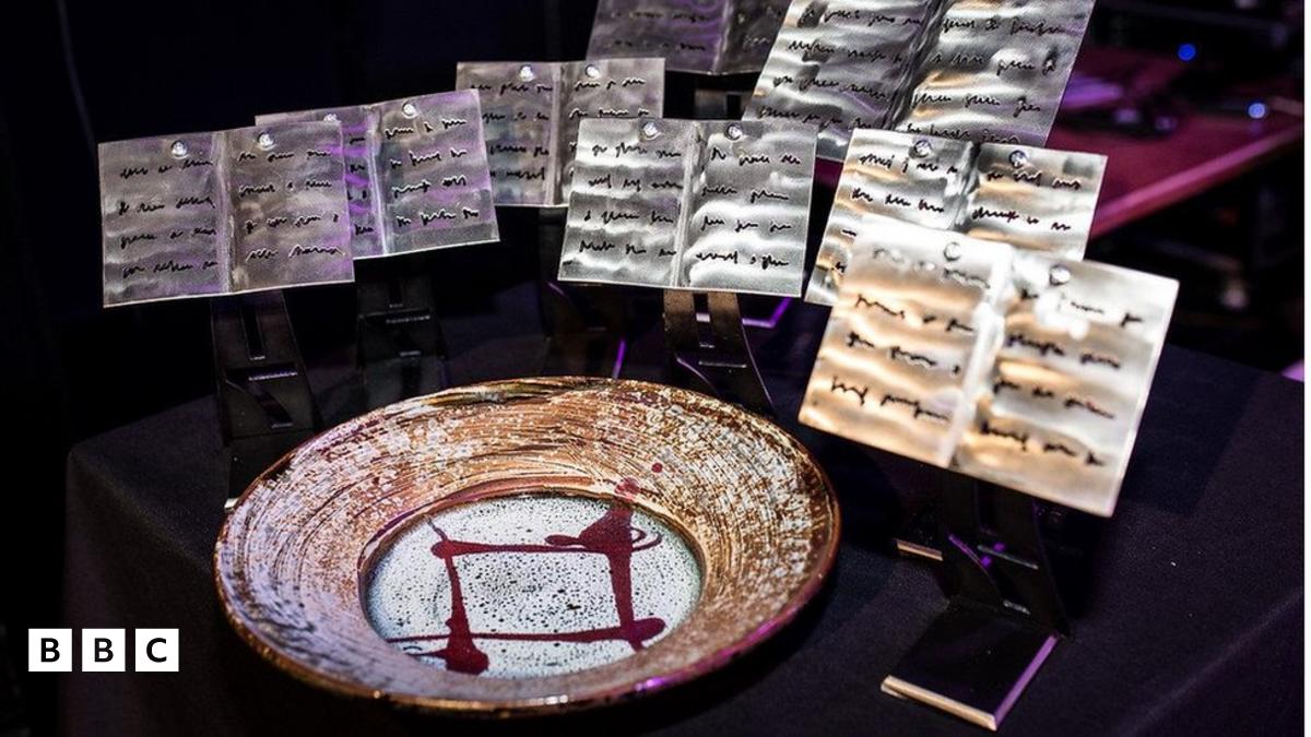 Yr artist Angharad Pearce Jones oedd yn gyfrifol am dlysau 2017