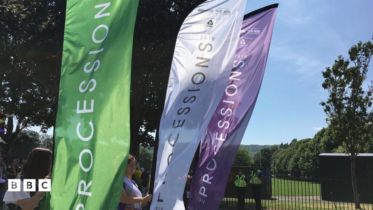 Gorymdeithio drwy Gaerdydd i gofio pleidlais i ferched