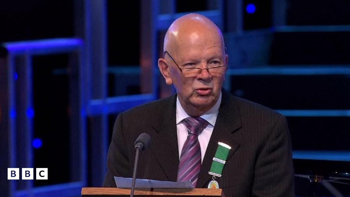 Yn ystod ei gyflwyniad dywedodd fod Mr Roberts wedi treulio cyfnodau "yn gweithio'n Uganda ac Ysgol Emrys ab Iwan, Abergele - a dwi ddim yn siŵr lle roedd yr anwariaid gwaethaf".