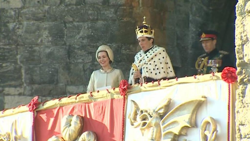 Maen nhw wedi bod yn ail-greu arwisgo'r Tywysog Charles yn 1969, a'r dre yn llawn actorion a chriwiau cynhyrchu, yn ogystal â sawl baner Jac yr Undeb.