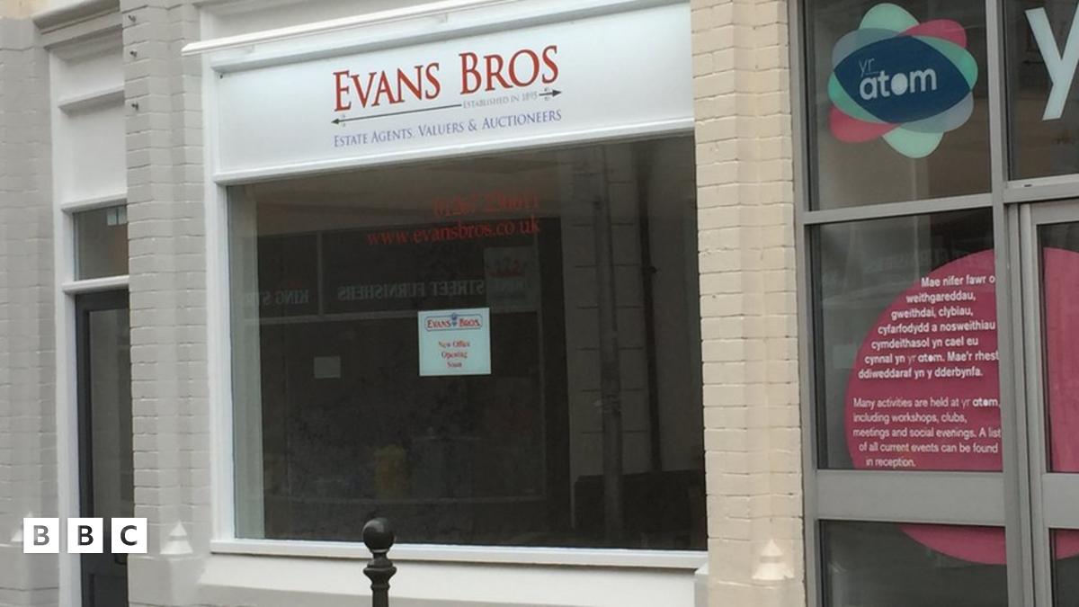 Mae arwyddion un o'r swyddfeydd yn uniaith Saesneg