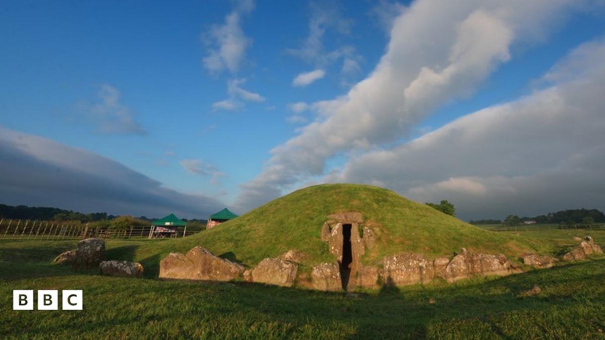 Mae'r siambr 5,000 oed wedi ei hunioni gyda llinell yr haul yn gwawrio ar hirddydd haf.