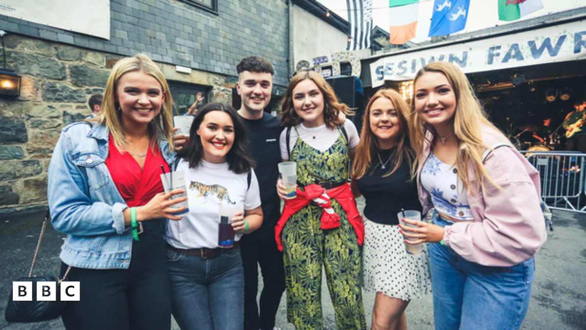 Roedd y criw yma o flaen y Clwb Rygbi yn edrych ymlaen at nos Wener y Sesiwn.