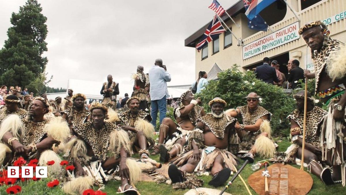 Mae Brenin Goodwill Zwelithini kaBhekuzulu a Brenhines Pumi, pennaeth Talaith y Zulu yn ymweld â maes y Sioe i nodi 140 mlynedd ers Brwydr Rourke'r Drifft yn Ne Affrica.