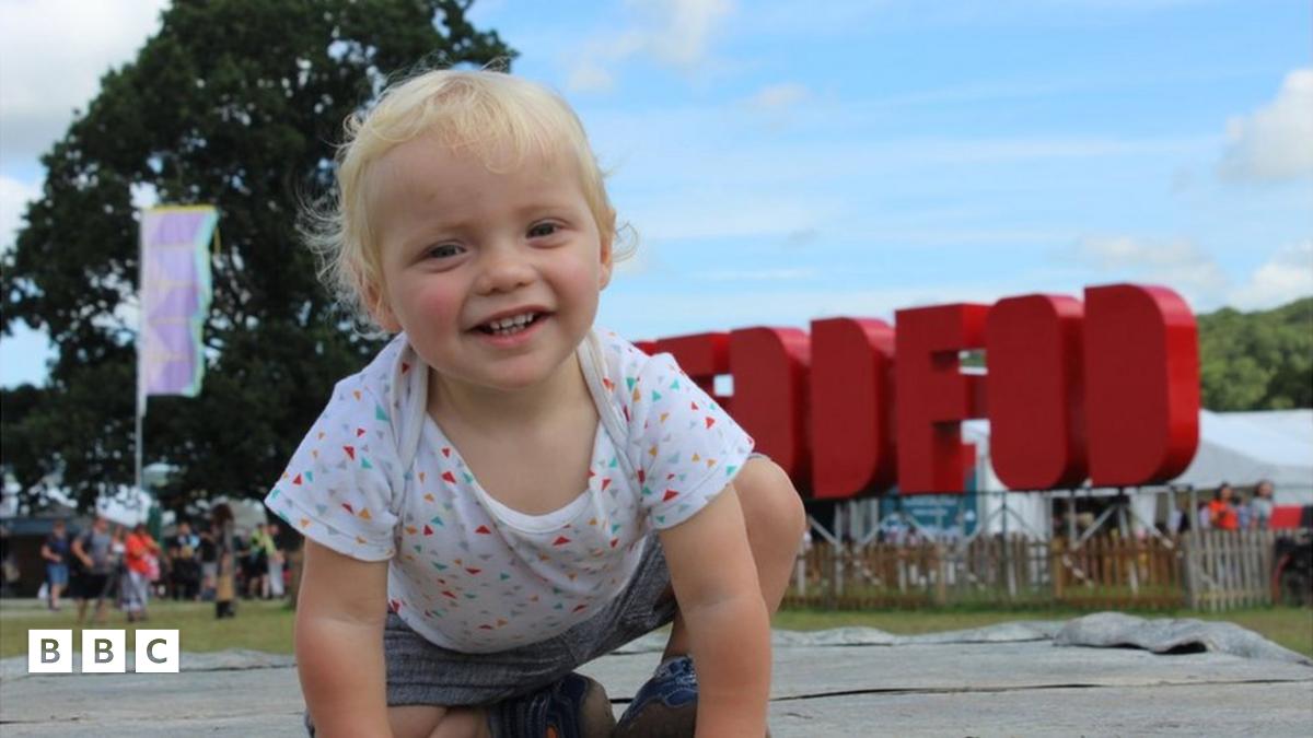 Nel, tair oed o Bontypridd yn eistedd ar ysgwyddau ei thad Paul yn ystod perfformiad Cyw ar y Brif Lwyfan