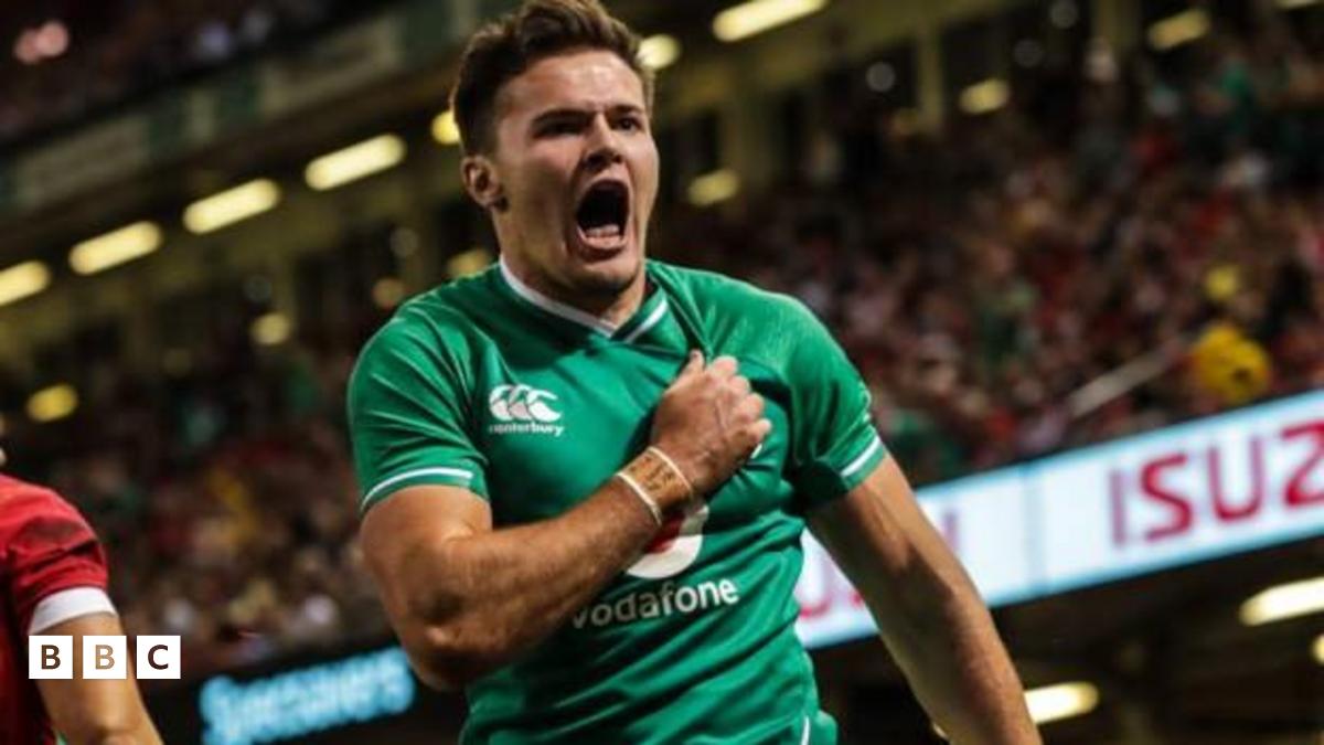Asgellwr chwith y Gwyddelod, Jacob Stockdale oedd y sgoriwr, yn dilyn rhediad yr asgellwr arall, Andrew Conway.