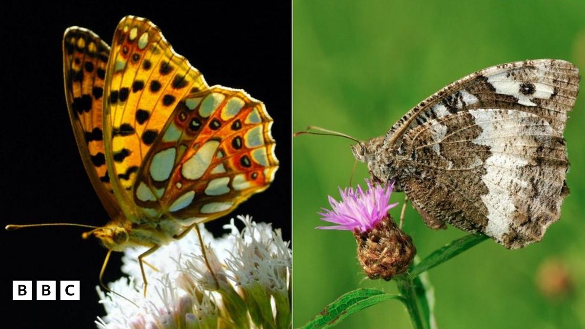 Mae'r brith brown a'r glöyn llwyd wedi gweld cwymp o dros 75% yn eu nifer
