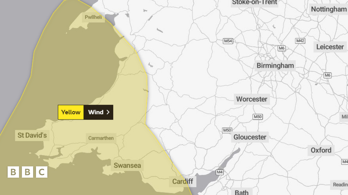 Bydd gwyntoedd o hyd at 70 mya yn taro, a hynny cyn i ffrynt o law trwm gyrraedd o'r gorllewin.