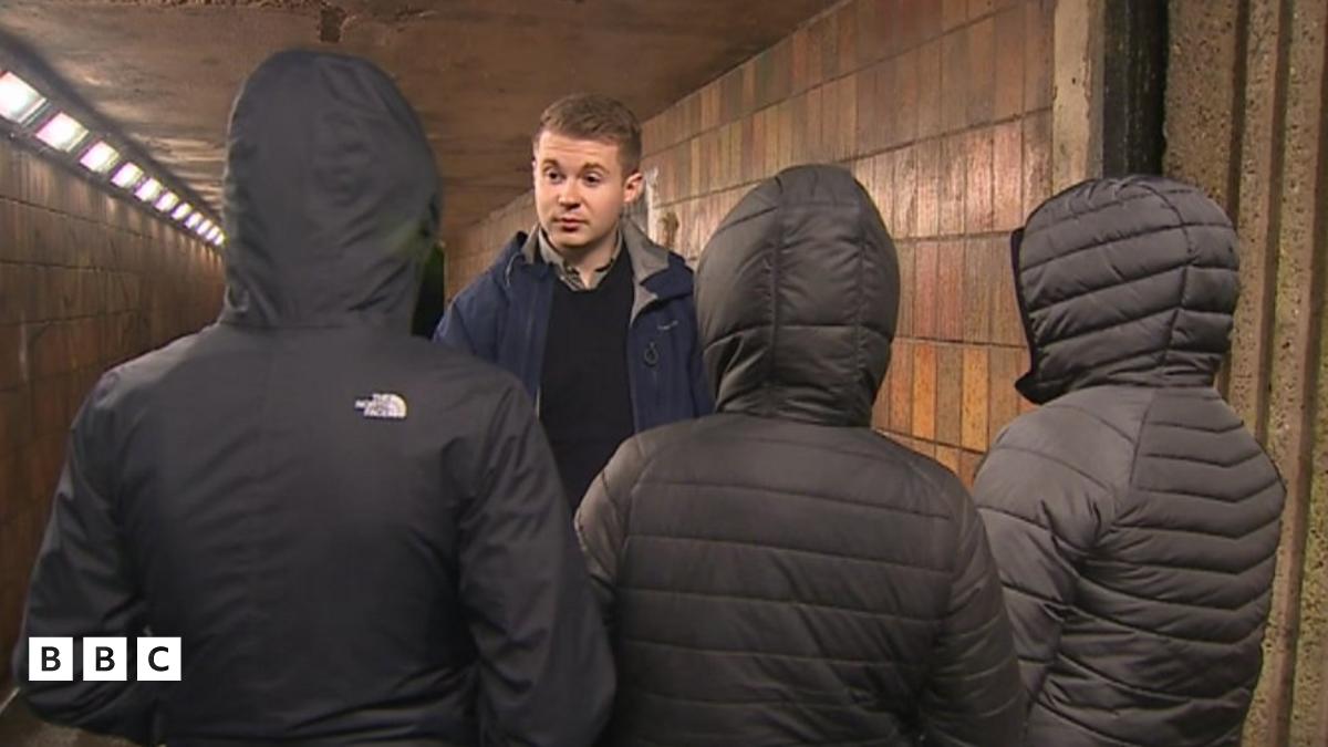 Ein gohebydd yn siarad gyda rhai o bobl ifanc Caernarfon