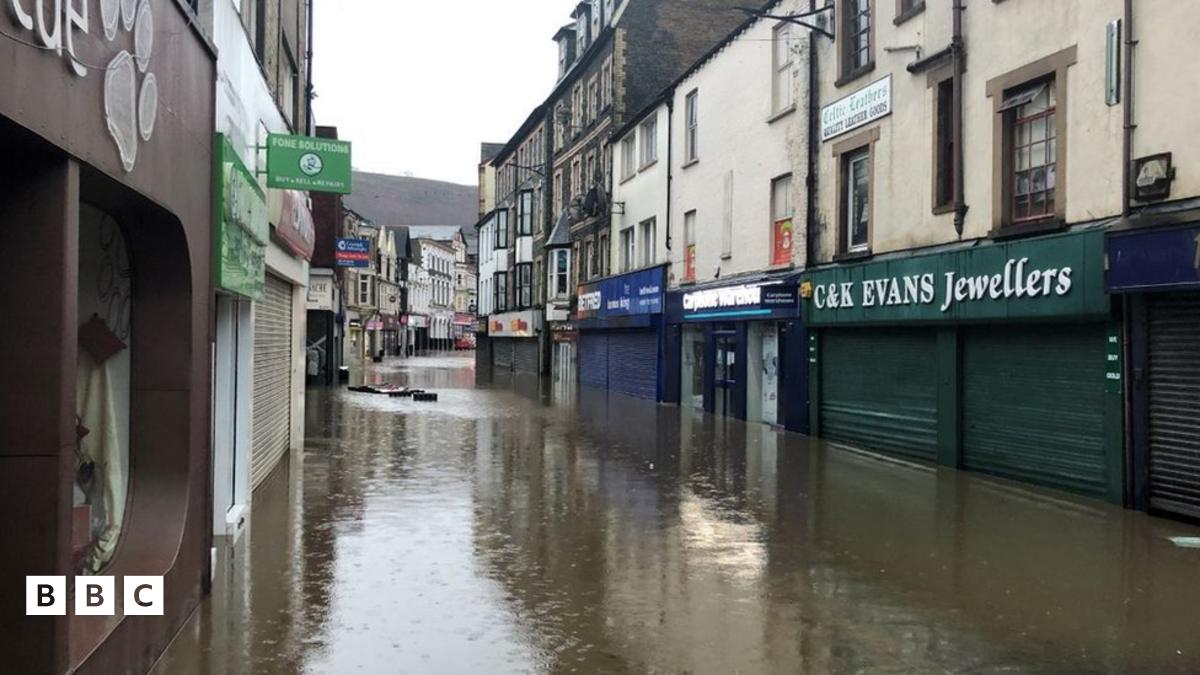 Yr olygfa yng nghanol Pontypridd fore dydd Sul wedi'r storm
