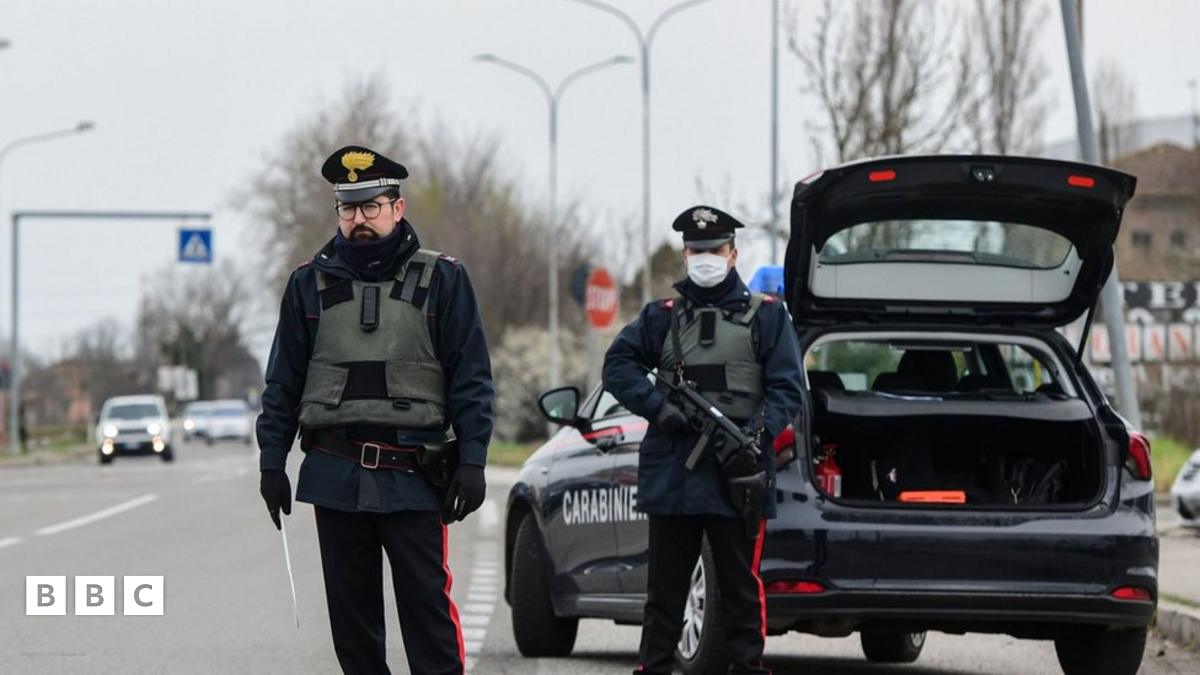 Yr heddlu ar batrôl yn gweithredu'r gwaharddiad teithio yn yr Eidal fore dydd Mawrth