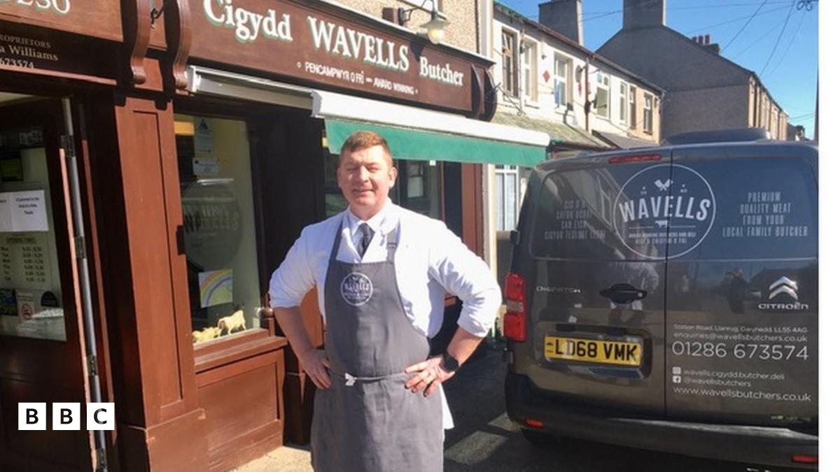 Un busnes sydd wedi bod yn brysur gydag archebion o'r fath dros y pythefnos diwetha' ydy Wavells yn Llanrug, Gwynedd, fel yr esbonia un o'r cigyddion sy'n gweithio yno, Carl Williams.