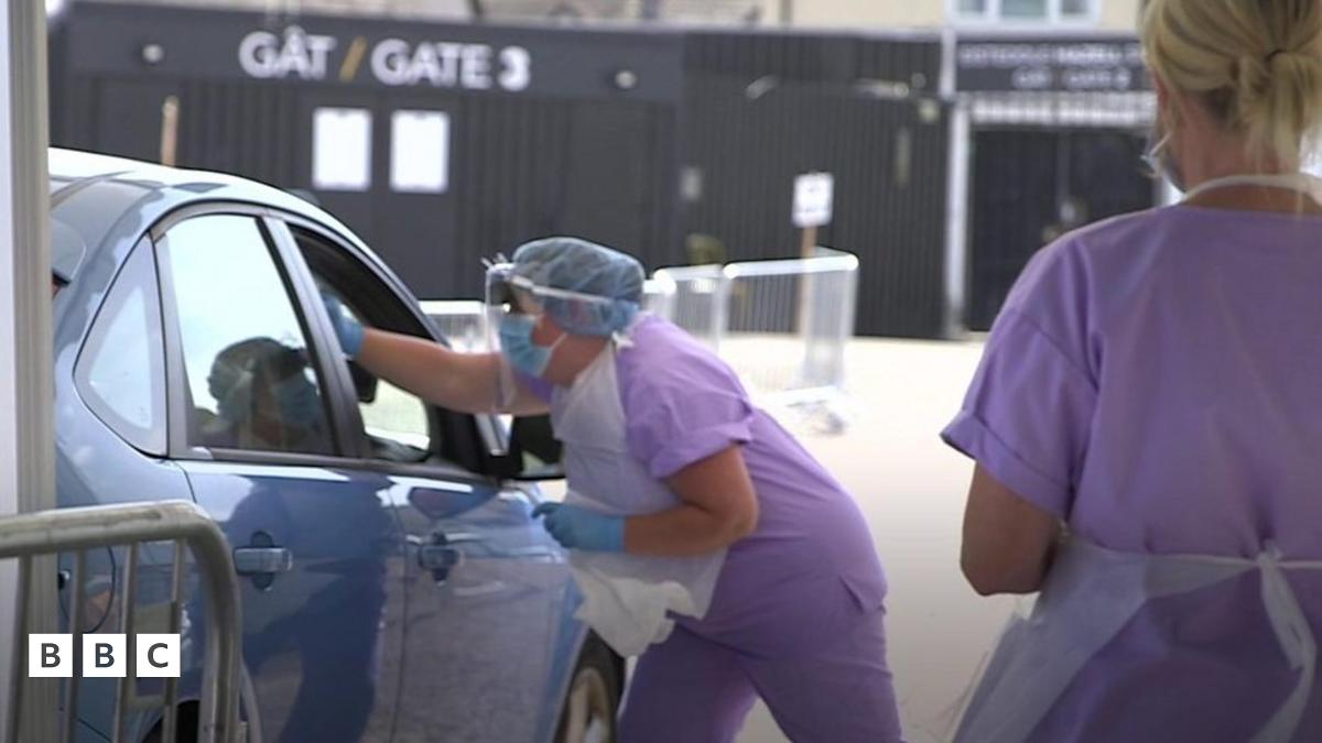 Ond doedd yr opsiwn i ddefnyddio gwefan Llywodraeth y DU i archebu prawf mewn canolfan yrru-i-mewn ddim ar gael yn syth yng Nghymru.