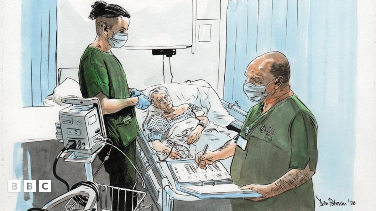 Cafodd yr artist Dan Peterson ei gomisiynu gan Fwrdd Iechyd Prifysgol Caerdydd a'r Fro i recordio'r cyfnod "hanesyddol" mewn cyfres o ddarluniau.