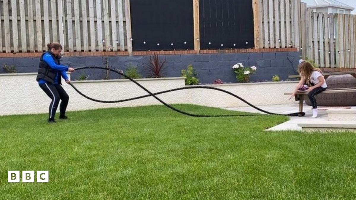 "Mae'r mab, Owen, yn ran o sgwad datblygu Gymnasteg Cymru, ac mae e wedi cario ymlaen i ymarfer drwy gydol y cyfnod o dan glo, ac mae' Caitlin y ferch wedi bod yn gwneud sesiynau ymarfer corff hefyd, ac o'n i'n meddwl i'n hunan "os oedden nhw'n gallu neud e, yna doedd dim esgus 'da fi".