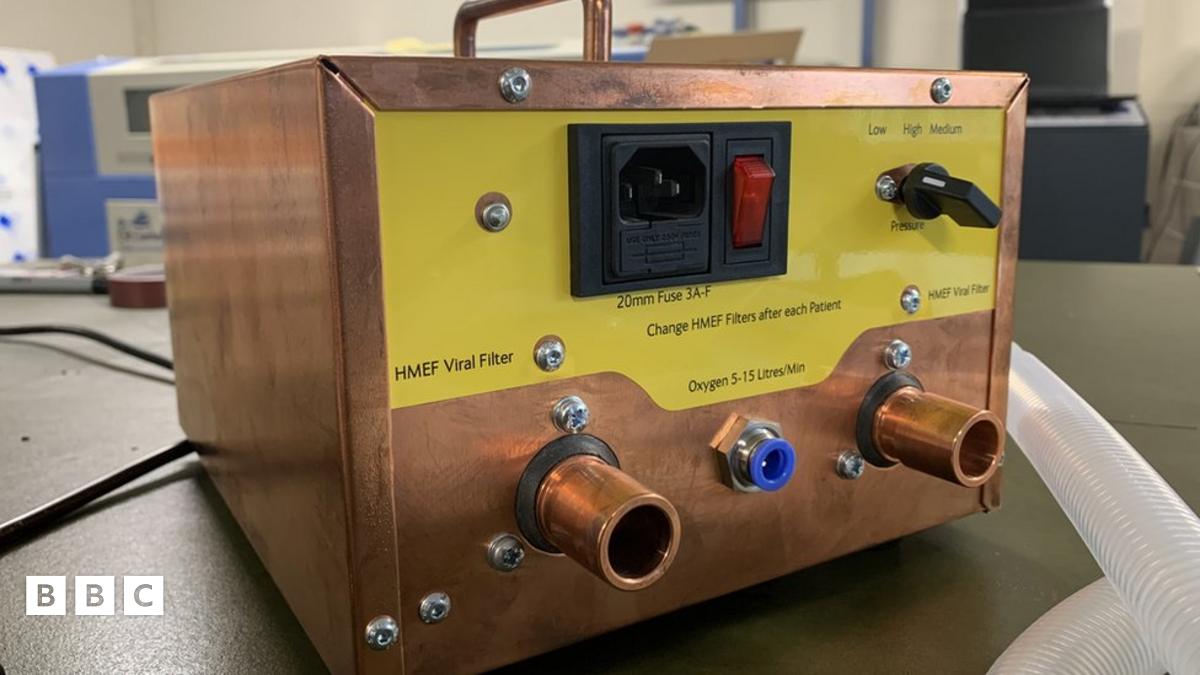Mae'r ddyfais wedi ei chreu o gopr, am ei fod yn lladd y feirws, ac mae ganddo sawl hidlydd i leihau'r perygl y bydd cleifion yn lledu'r feirws wrth ei defnyddio.