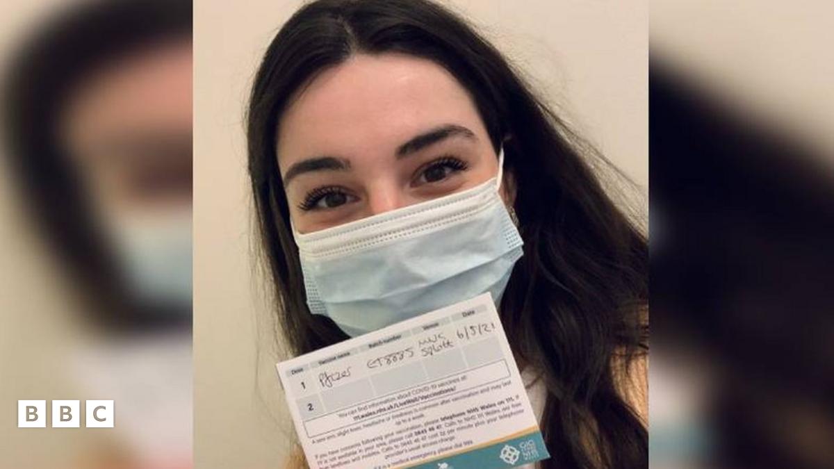Roedd Greta Sion o Gaerdydd wrth ei bodd yn derbyn ei brechlyn cyntaf cyn dychwelyd i'r Brifysgol ar gyfer gwneud cwrs ôl-radd