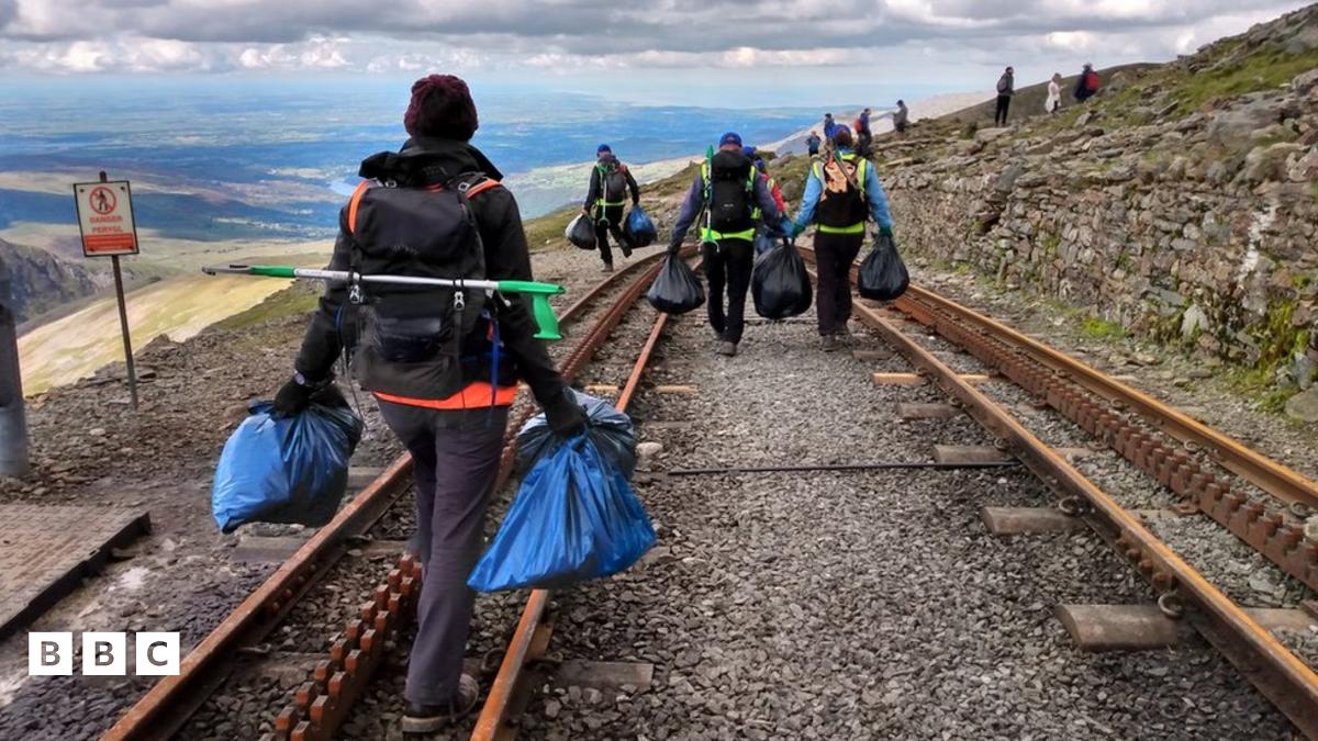Mae cannoedd o fagiau o sbwriel wedi cael eu casglu ar Yr Wyddfa dros y flwyddyn ddiwethaf