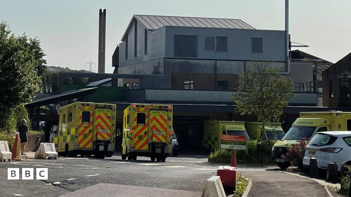 Roedd ambiwlansys i'w gweld yn aros y tu allan i Ysbyty Treforys fore Mercher