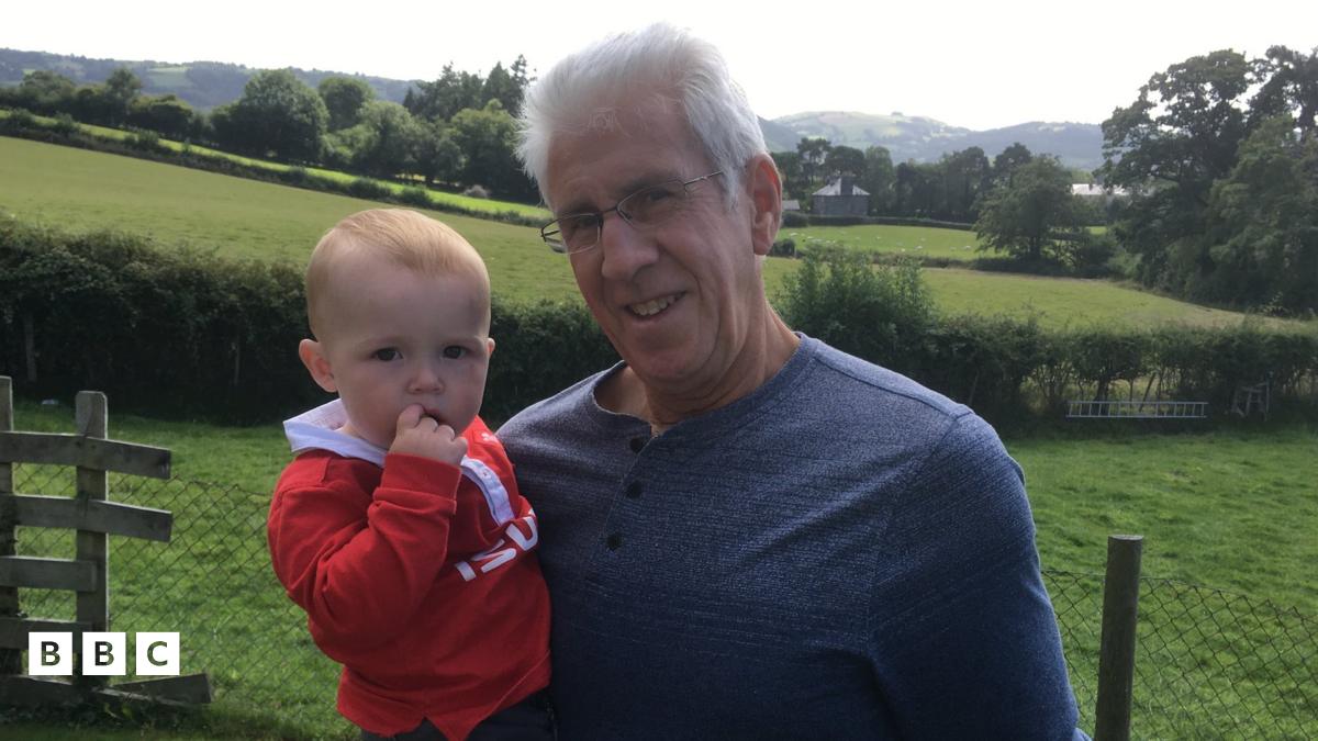 Y Parchedig Gerwyn Roberts o Lanrwst yn cwrdd â'i ŵyr am y tro cynta'