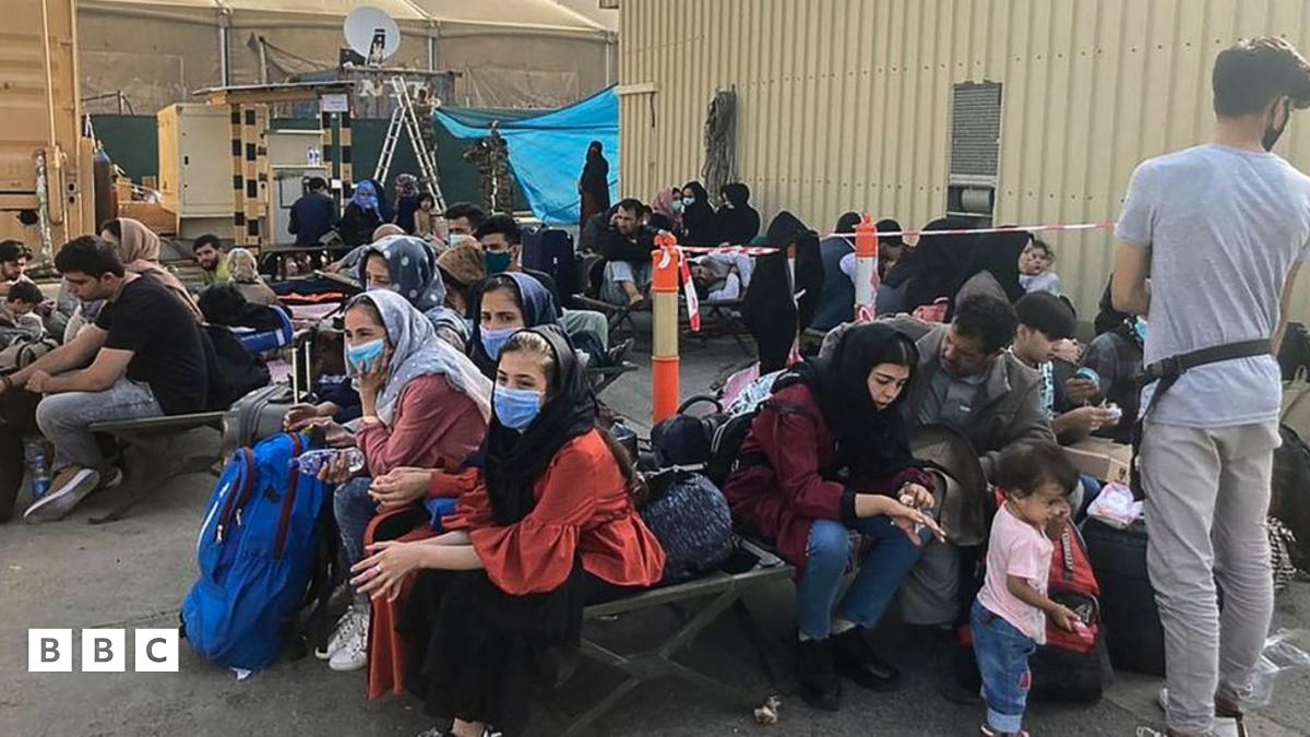 Pobl yn disgwyl i adael Afghanistan o Faes Awyr Kabul ar 18 Awst