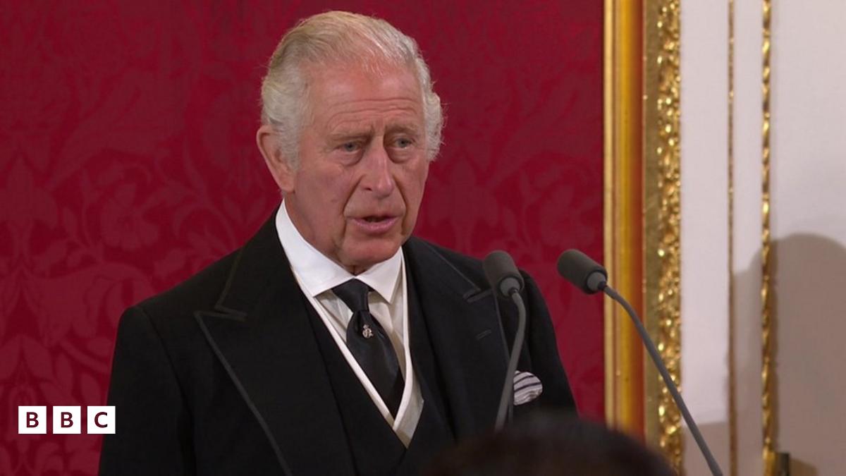 Y Brenin Charles III yn siarad yn ystod seremoni Cyngor yr Esgyniad fore Sadwrn