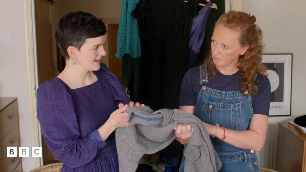 Mae'r rhaglen yn dangos y ddwy yn wynebu'r her o drefnu cypyrddau dillad sy'n gwegian gydag esgidiau a dillad, gan chwynnu a didoli cyn rhoi trefn newydd ar bethau.