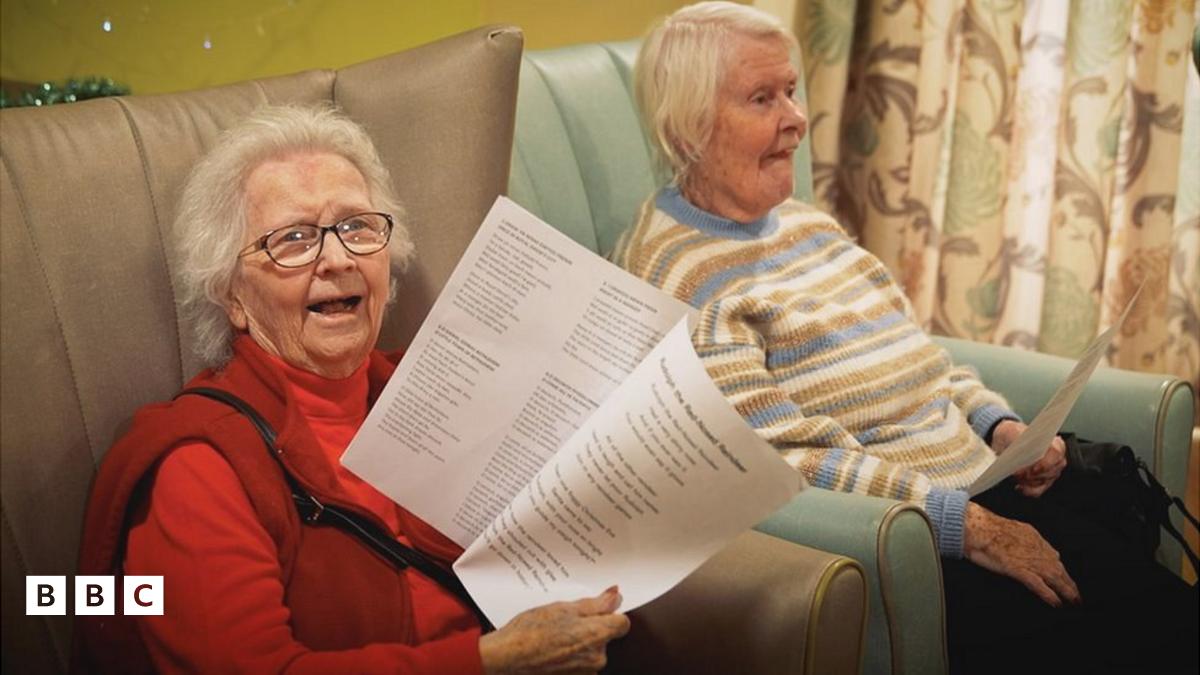 Dau o breswylwyr cartref Bryn Seiont Newydd, Caernarfon yn ymuno â'r canu