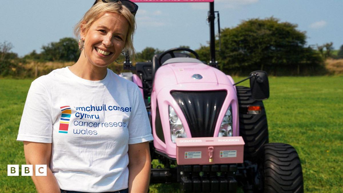 Dros y penwythnos bu Mari yn gyrru tractor pinc ar hyd heolydd cul cefn gwlad Sir Benfro - o Grymych i Faenclochog - er mwyn codi ymwybyddiaeth o ganser.