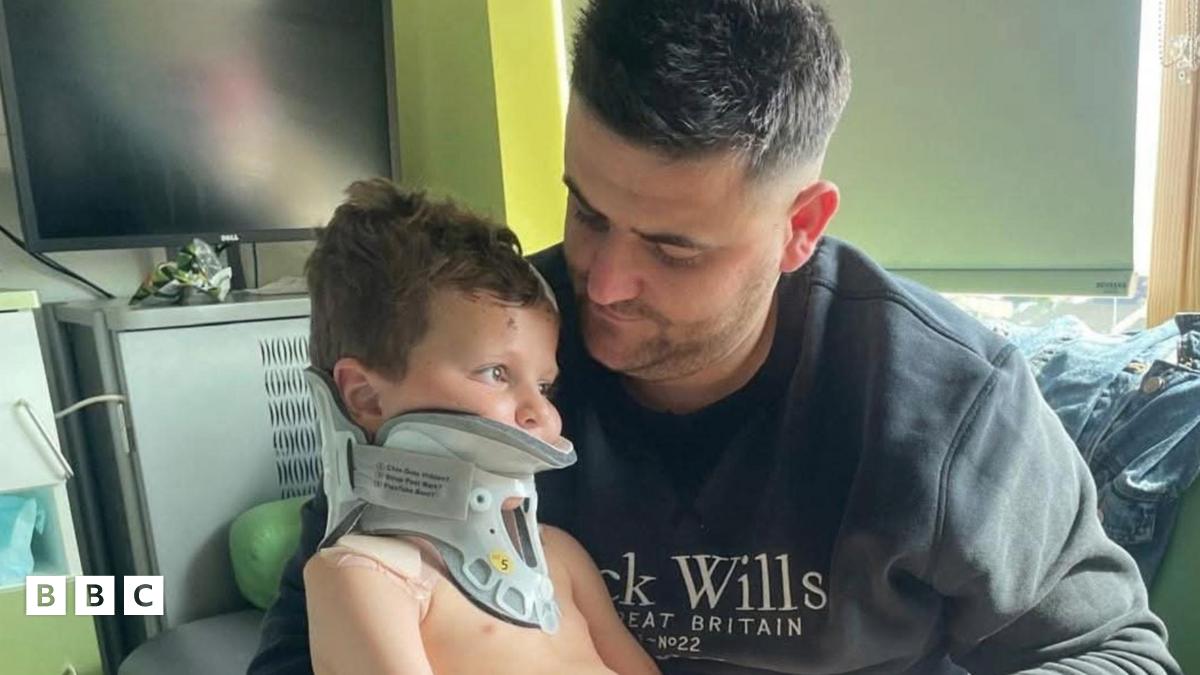Cafodd Arlo Buckley, sydd ym mreichiau ei dad Danny, ei adael ar ochr ffordd mewn achos o daro a ffoi, clywodd llys