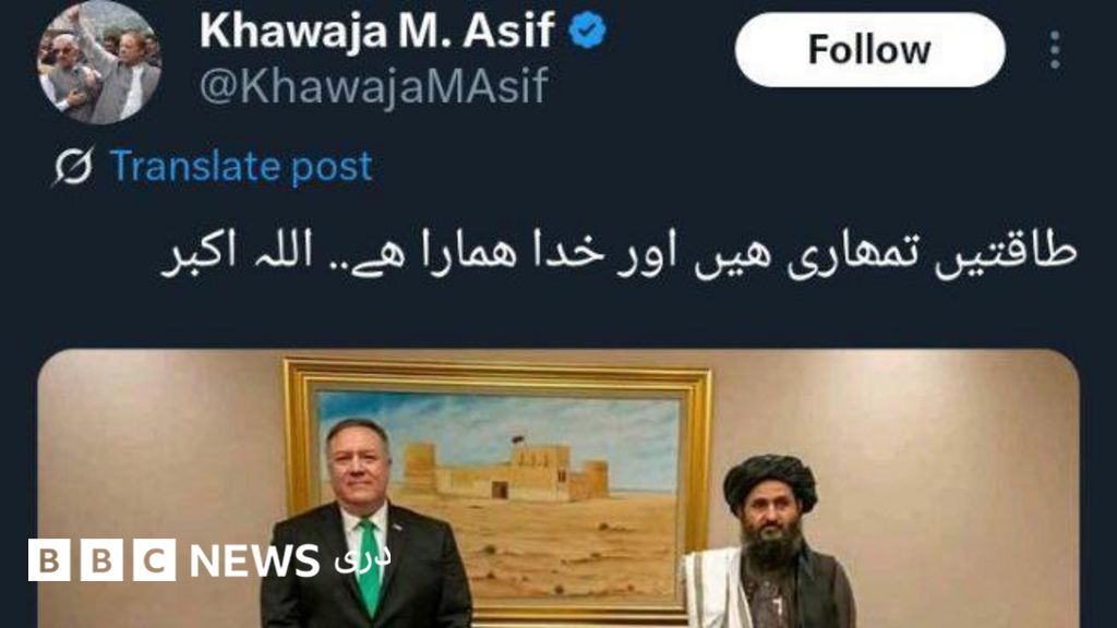 همان روز خواجه محمد آصف، وزیر خارجه سابق پاکستان (وزیر دفاع فعلی) در شبکه اجتماعی ایکس (توییتر آن زمان) عکسی از ملا برادر و مایک پمپئو نشر کرد و به زبان اردو در بالای آن نوشت: «قدرت از شماست و خدا از ماست. الله اکبر»