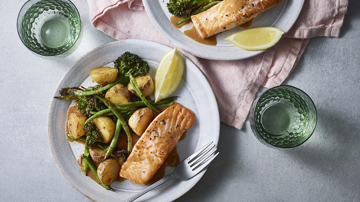 - Salmon traybake