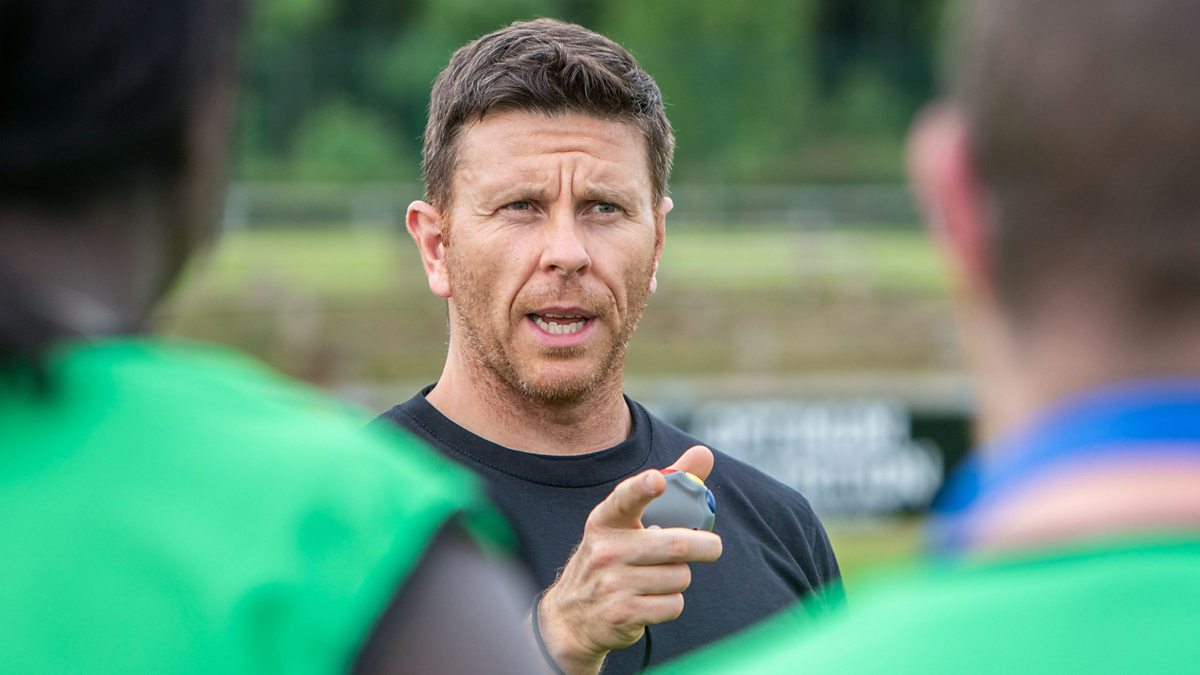 Fitness trainer Adam Peacock demonstrates how to do spear thrusters.