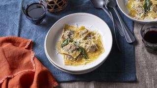 This simple ravioli recipe uses tender braised beef cheek (or ox cheek) as a filling. You can increase the quantities of the beef and have it for a separate meal, or use it as a ragu for pappardelle. It makes a showstopper starter for six or meal for four.