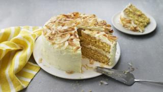 Using both desiccated coconut and coconut cream gives a brilliant depth of flavour to this cake – and the lime and coconut buttercream finishes it off lovely.